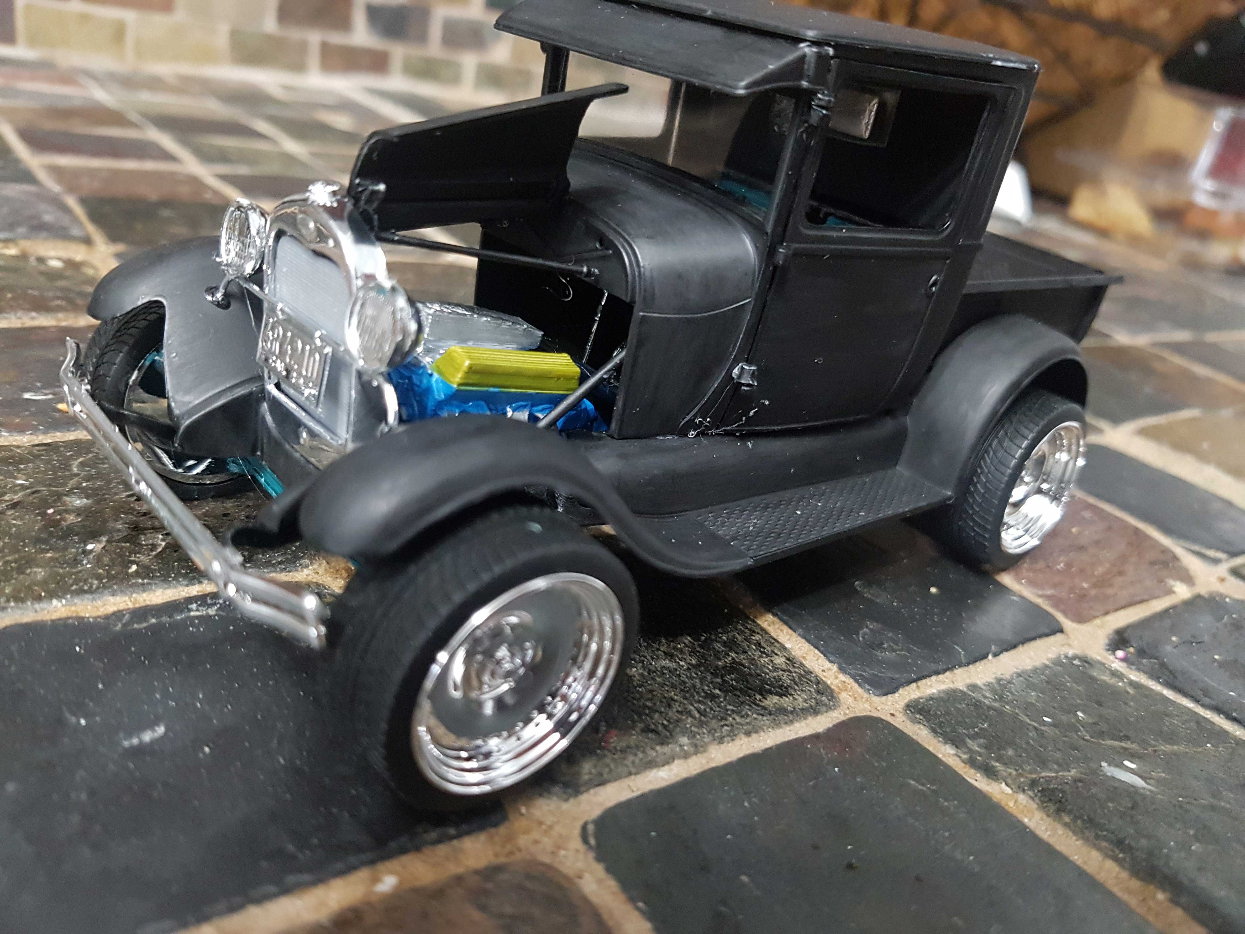 Kit is Monogram 1:25 scale. 1929 Ford Rat Rod. Pegasus deep dish 23" rims 3D printed flat head V8
