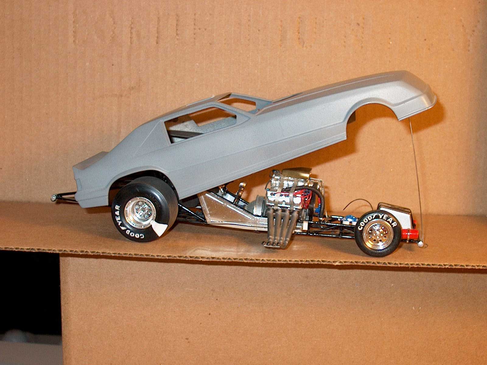 Kit: In-progress Monogram 1/24 scale Milly Myers Mustang Funny Car. Modifications: Headlights filled in, engine wired and plumbed, brake lines added. Kit has been in progress for over 30 years LOL!